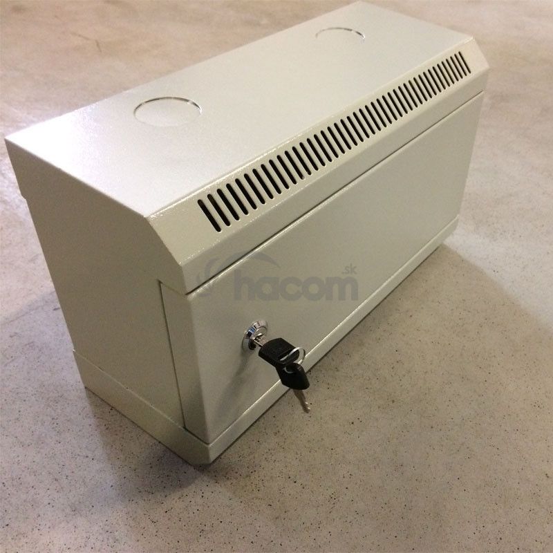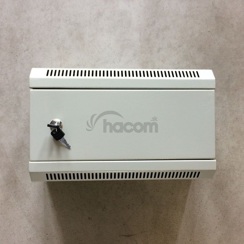 10'' široký, 4U vysoký, 140mm hlboký, SIVÝ, plechové dvere