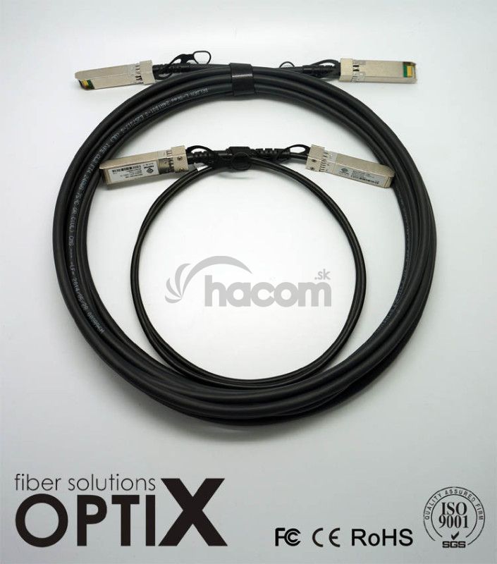 DAC (Direct Attach Cable) OPTIX slúži na rýchle a lacné prepojenie dvoch sieťových aktívnych prvkov rýchlosťou 10Gbps.