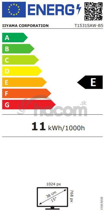 15 "iiyama T1531SAW-B5 - TN, 1024x768,8ms, 370cd / m2, 700: 1,4: 3, VGA, HDMI, DP, USB, repro. T1531SAW-B5