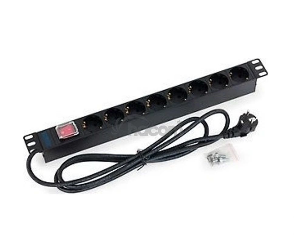 - 19" 8xDE zás., vypínač, 3x1.5mm 2m kab.DE, RAL9005 RAB-PD-X04-A1