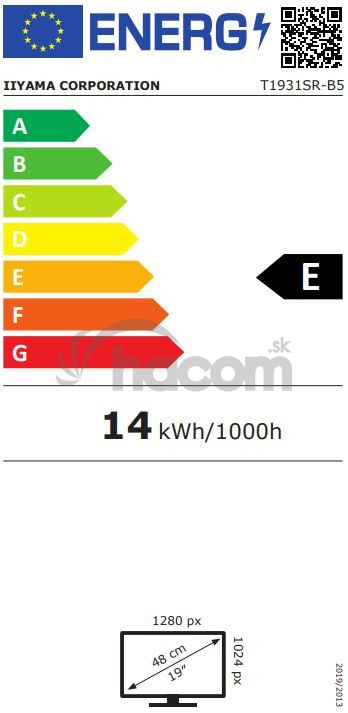 - 19 "iiyama T1931SR-B5 - TN, SXGA, 5ms, 250cd / m2, 1000: 1,5: 4, VGA, HDMI, DP, USB, repro, výška. T1931SR-B5