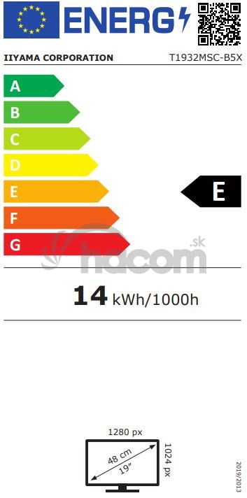 - 19 "iiyama T1932MSC-B5X - IPS, FullHD, 14ms, 250cd / m2, VGA, HDMI, DP, T1932MSC-B5X