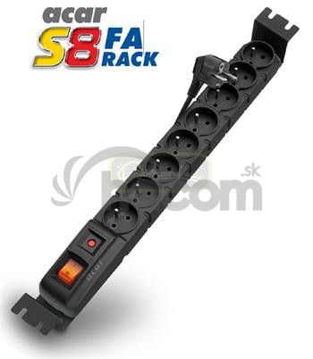 Napájací panel ACAR S8 je vybavený novým a veľmi spoľahlivým filtračním obvodom, ktorý odstraňuje elektromagnetické rušenie a dokonale chrání všetky zariadenia, ktoré sú do neho pripojené. Tento model je dodávaný vrátane odnímatelných montážnych úchytov, ktoré umožňujú inštaláciu tejto prepäťovej ochrany do 19" rámu stojanových i nástenných rozvádzačov. Výška týchto montážnych úchytov v 19" ráme je 1,5U; dĺžka prívodného kábla je 5m. ACAR S8 je vybavený podsvieteným vypínačom, automatickým ističom a umožňuje až štyri možné varianty zloženia prívodného kábla. Moderné provedenie, konštrukcia z vysoko kvalitného a nehorľavého plastu (podľa ČSN IEC 60884-1 a ČSN EN 61058-1)