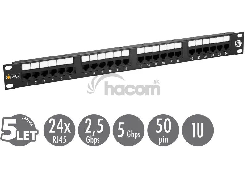 - 19 "Patch panel Solarix 24xRJ45 CAT5 UTP čierny 150MHz SX24-5E-UTP-BK