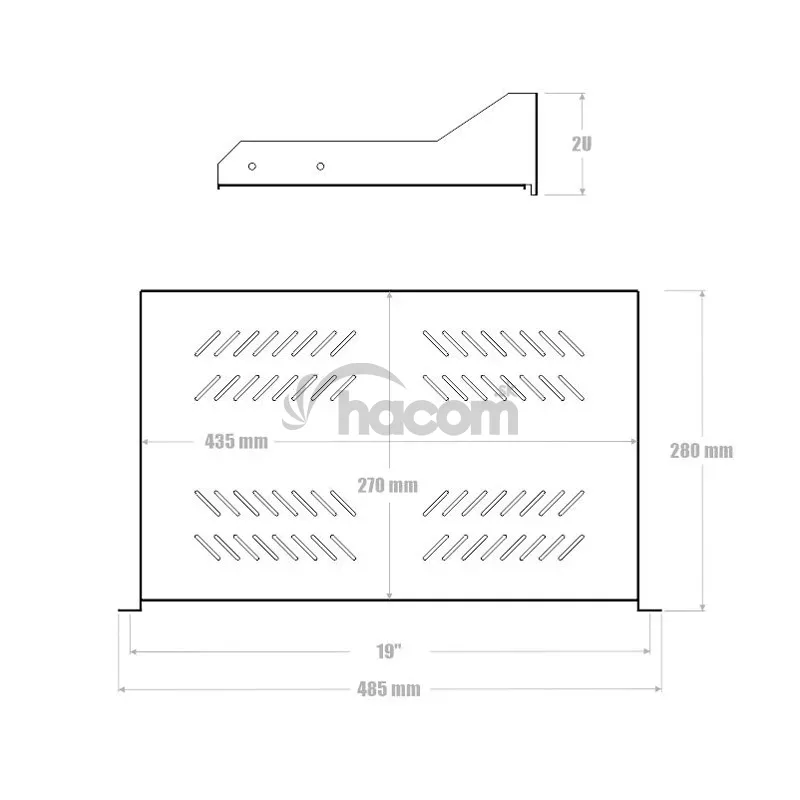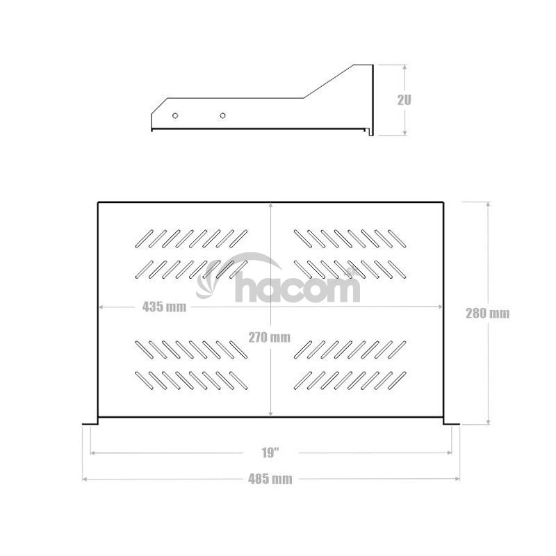- 19" nízkoprofilová polica 280 mm s uchytením 2U je vhodná pre umiestnenie do 19 "dátového rozvádzača s hĺbkou 400 mm a hlbšie.