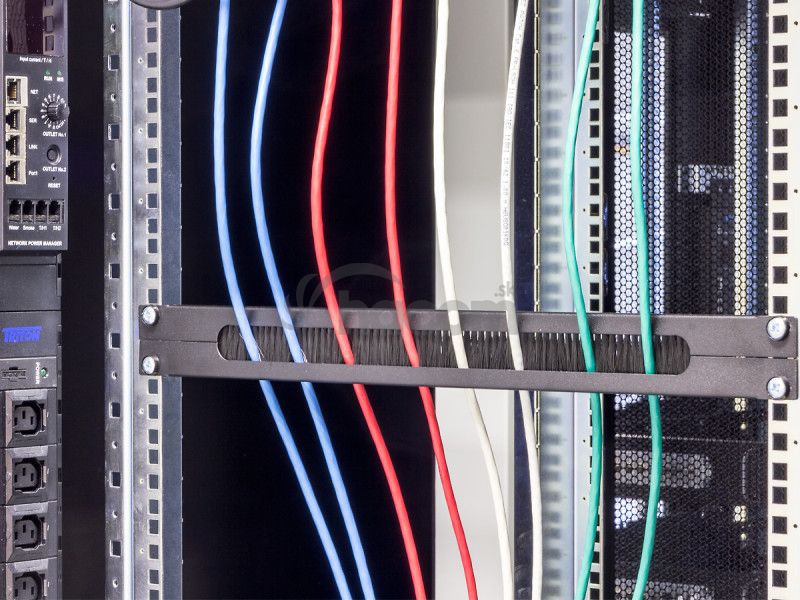 19 "priechodná panel 1U rozdelený horizontálne, kefa, otvor 350 x 21 mm.