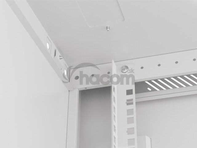Pomocou dvoch vetracích otvorov v stropnom paneli zaisťujeme vynikajúce prúdenie vzduchu a účinné chladenie. Užívateľom ponúkame ešte lepšiu kontrolu nad teplotou vo vnútri skrine, ktorá je kľúčová pre udržanie optimálnych provozních podmienok zariadenia.
