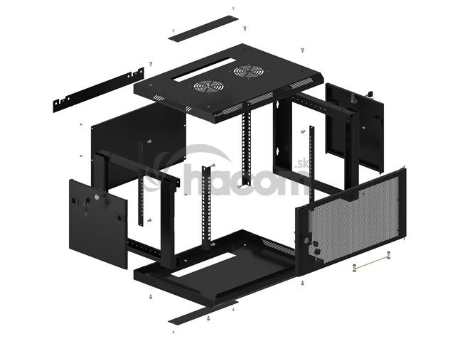Pomocou dvoch vetracích otvorov v hornom paneli zaisťujeme vynikajúce prúdenie vzduchu a účinné chladenie. Užívateľom ponúkame ešte lepšiu kontrolu nad teplotou vo vnútri skrine, ktorá je zásadná pre udržanie optimálnych provozních podmienok zariadenia.