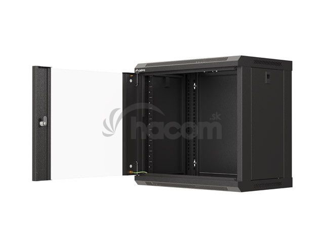 Presklené dvere na prednej strane a prístup z bokov a zadnej časti skrine prostredníctvom odnímateľných bočných panelov a odnímateľného zadného panelu znamenajú vysokú funkčnosť aj ochranu zariadenia pred náhodným vypnutím alebo poškodením. Okrem toho je možné skriňu namontovať priamo na stenu (pomocou otvorov v ráme) alebo pomocou špeciálnej lišty, čo výrazne uľahčuje inštaláciu v rôznych podmienkách.