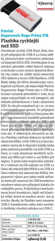 - 1TB Patriot RAGE Prime USB 3.2 gén 2 PEF1TBRPMW32U