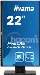 22 "iiyama XUB2292HS-B1: IPS, FullHD @ 75Hz, 250cd / m2, 4ms, VGA, HDMI, DP, height, pivot, čierny XUB2292HS-B1
