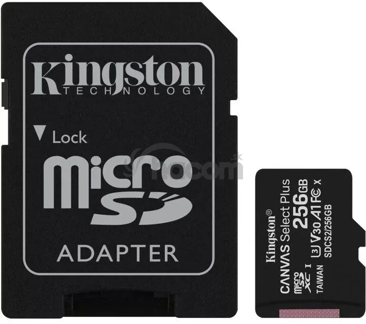 - 256GB microSDXC Kingston Canvas Select Plus A1 CL10 100MB/s + adaptér SDCS2/256GB