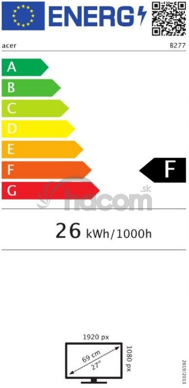 - 27 "LCD Acer B277 - IPS, FullHD, 4ms, 75Hz, 250cd / m2, 100M: 1,16: 9, HDMI, DP, VGA, repro, pivot + 3 roky NBD UM.HB7EE.005