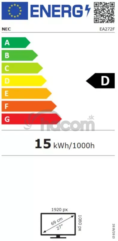 27" LED NEC EA272F, 1920x1080, IPS, 250cd, 150mm, WH 60005247