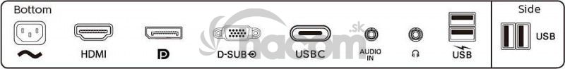 * Vstup signálu: VGA (Analog), DisplayPort 1.2 x 1, HDMI 1.4 x 1, USB-C 3.2 prvej generácie 1 x 1 (upstream, prívod energie až 65 W)