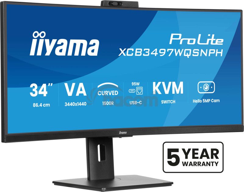 - 34" iiyama XCB3497WQSNPH-B1: VA, UWQHD, USB-C, RJ45, c XCB3497WQSNPH-B1