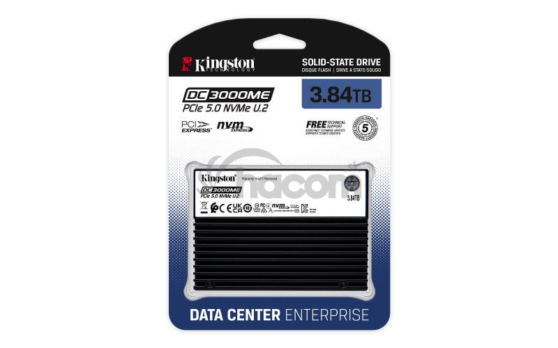 SSD disk DC3000ME U.2 pre dátové centrá spoločnosti Kingston je vybavený vysokorýchlostným rozhraním PCIe 5.0 NVMe a využíva pamäť 3D eTLC NAND, takže je vhodný pre širokú škálu serverových aplikácií, ako sú umelá inteligencia, HPC, OLTP, databáza, cloudová infraštruktúra a edge computing. DC3000ME obsahuje vstavanú ochranu proti strate napájania, ktorá chráni dáta v prípade náhlej straty napájania, a AES 256-bitové šifrovanie pre maximálne zabezpečenie dát. DC3000ME využíva najnovšie vysokorýchlostné rozhranie PCIe 5.0 a je spätne kompatibilný so servermi a základnými doskami PCIe 4.0. DC3000ME je ponúkaný v kapacitách 3,84 TB, 7,68 TB a 15,36 TB1 a je podporovanýlegendárnou technickou podporou Kingston a päťročnou obmedzenou zárukou.