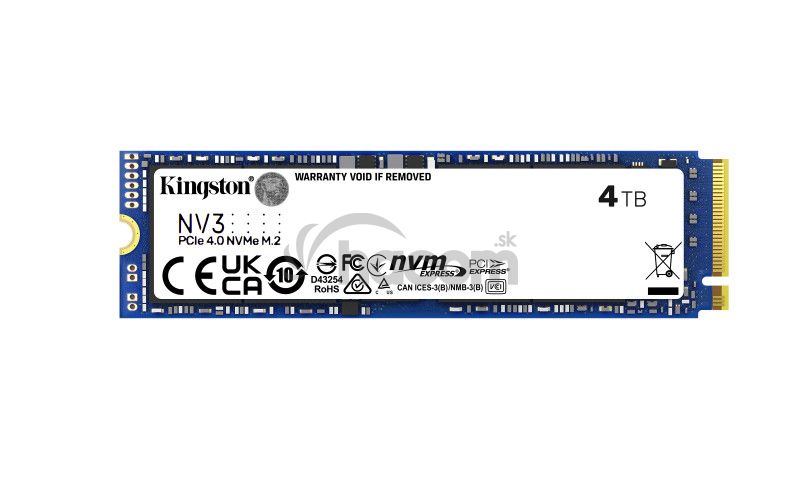 Kingston NV3 4 TBVýkonný interný NVMe SSD disk s nízkou spotrebou a nižším zahrievaním optimalizuje výkon vášho systému. Formát disku je M.2 a kapacita 4 TB.
