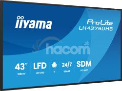 - 43" iiyama LH4375UHS-B2AG: IPS, 4K UHD, Android, 24/7 LH4375UHS-B2AG