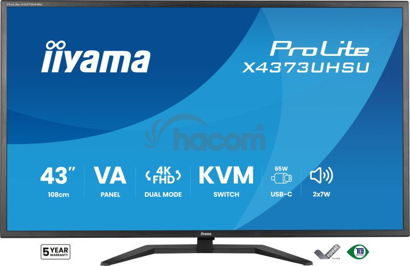- 43" iiyama X4373UHSU-B2: VA, 4K, HDMI, DP, USB-C X4373UHSU-B2
