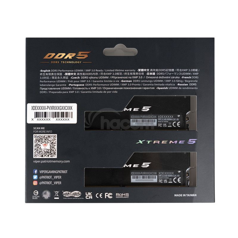 48GB DDR5-7600MHz CL36 Patriot Xtreme5 RGB, 2x24GB PVXR548G76C36K