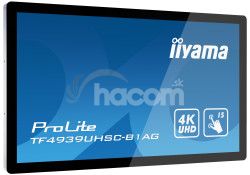 49" iiyama TF4939UHSC-B1AG: IPS, 4K, capacitive, 15P, 500cd/m2, VGA, HDMI, DP, 24/7, IP54, čierny TF4939UHSC-B1AG