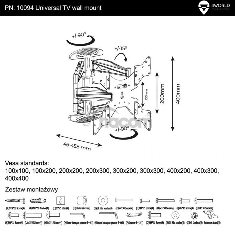 4World Držiak pre LCD 32-75 "otočný / sklopný max.50kgPopis výrobku: