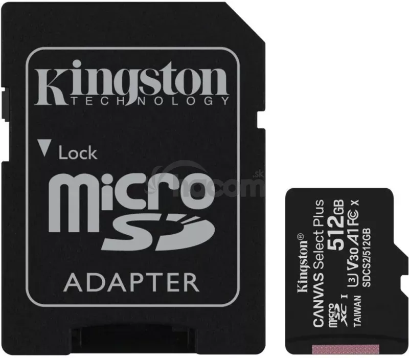 - 512GB microSDXC Kingston Canvas Select Plus A1 CL10 100MB/s + adaptér SDCS2/512GB