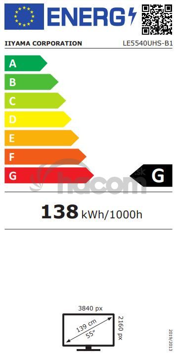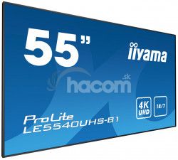 - 55 "iiyama LE5540UHS-B1 - AMVA3,4K UHD, 8ms, 350cd / m2, 4000: 1,16: 9, VGA, HDMI, DVI, USB, RS232, RJ45, repro LE5540UHS-B1