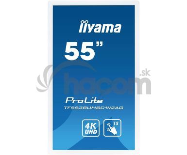 55 "iiyama TF5538UHSC-W2AG: IPS, 4K, Capacitive, 15P, 500cd / m2, VGA, HDMI, DP, DVI, 24/7, biely TF5538UHSC-W2AG