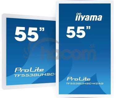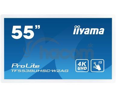 - 55 "iiyama TF5538UHSC-W2AG: IPS, 4K, Capacitive, 15P, 500cd / m2, VGA, HDMI, DP, DVI, 24/7, biely TF5538UHSC-W2AG