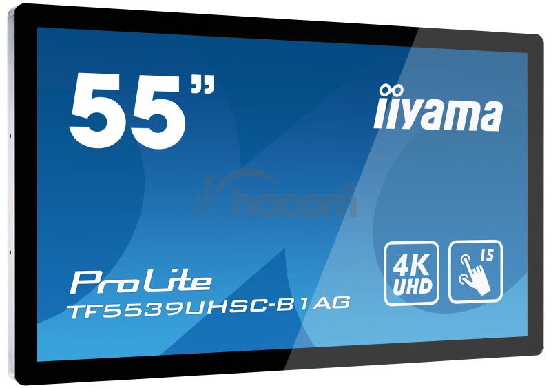 - 55 "iiyama TF5539UHSC-B1AG: IPS, 4K, Capacitive, 15P, 500cd / m2, VGA, HDMI, DP, 24/7, IP54, čierny TF5539UHSC-B1AG