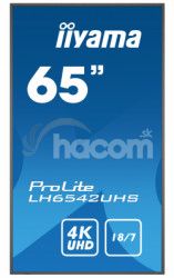 - 65" iiyama LH6542UHS-B3: IPS, 4K UHD, 500cd/m2, 18/7, LAN, Android 8.0, čierny LH6542UHS-B3