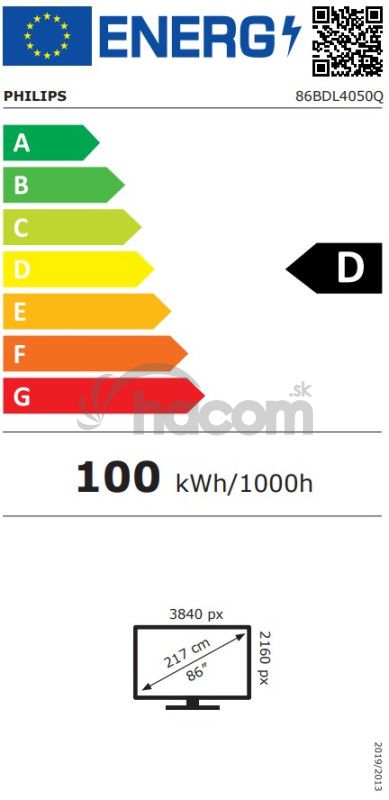 - 86" LED Philips 86BDL4050Q-UHD, 500cd, AN, 24/7 86BDL4050Q/00