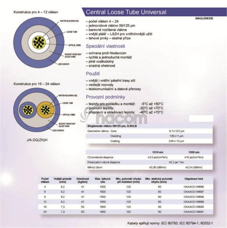 Kábel gélový UNIV 09/125um, 8vl., LSOH,CLT so základnou ochranou proti hlodavcomObchodné informácie: