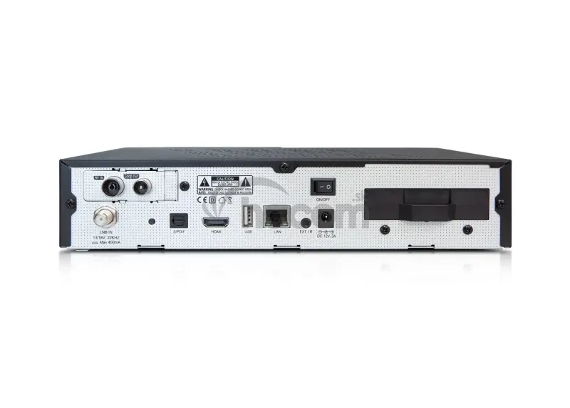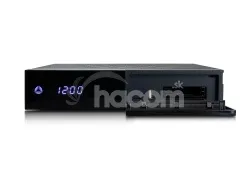 Elegantný dizajn prijímača sa bude hodiť do každej obývačky. Na prednom paneli sa nachádza 7-segmentový LED displej. Za dvierkami nájdete 1x čítačku kariet, 2x slot pre CI modul, 1x USB 2.0 a 1x slot pre microSD kartu, ktorú môžete využiť ako interné úložisko pre Vaše nahrávky. Na zadnom paneli sa nachádza vstavaný satelitný tuner DVB-S2X a druhý Plug & Play terestriálny/káblový tuner DVB-C/T2. Okrem využitia microSD karty ako interné úložisko môžete do prijímača jednoducho cez šuflíkový systém vložiť 2,5" HDD. Z konektorovej výbavy na zadnom paneli nájdete S/PDIF optický digitálny audio výstup, USB 2.0, ethernet RJ45, IR extender pre pripojenie IR oka (nachádza sa v balení prijímača), vypínač a vstup pre externý zdroj DC 12V-3A.