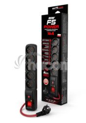 Acar F5 3m kábel, 5 zásuviek, prepäťová ochrana, Max.prúd 16A, čierny ppacarf5-3power