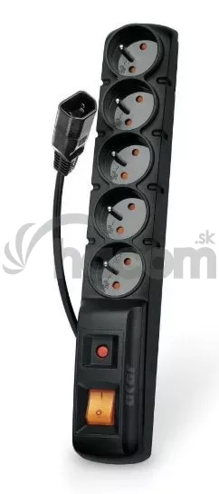 5 zásuvek s uzemněním. Použití síťové zásuvky IEC 60320 C14 určuje jeho profesionální použití a použití