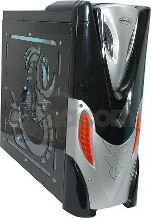 Kvalitná počítačová skriňa s veľmi zaujímavým herným dizajnom zaujmeK dispozícii máte štyri 5,25 pozície, dve 3,5 pozície a ďalších šesť uzatvorených 3,5 pozície. Bočnice je presklená a opatrená kovovým veľmi zaujímavou frézovaným krytom. Skriňa sa bude vynímať na stole každého hráča.
