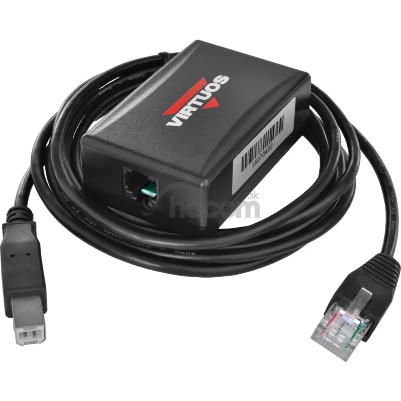 Adaptér na pripojenie pokladničných zásuviek Virtuos k terminálu FiskalPro VX520. Umožňuje zásuvku nielen otvárať, ale aj zisťovať jej stav. Na napájanie využíva RS-232 port pripojeného terminálu.Pre pripojenie zásuviek Virtuos je potrebné použiť kábel RJ12 24V (EKA0518), ktorý je pri zásuvkách Virtuos dodávaný ako ich súčasť, prípadne je možné kábel zakúpiť samostatne.