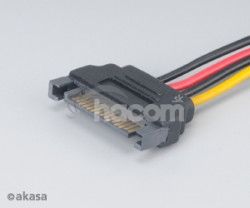 Prídavný konektor pre 4pinovú perifériuPrídavný konektor pre 4pin periférie, prevádza 15pin SATA PSU napájanie na 4pin PSU Molex konektor, určený pre ITX a ATX zdroje bez dostatočného počtu 4pin Molex napájacích konektorov, dĺžka: 15cm.