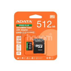 - ADATA 512GB MicroSDXC UHS-I U3 V30 + adaptér UD512GUI3V30A2SP-RA1