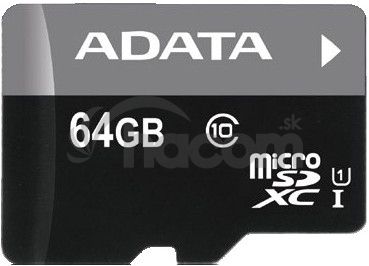- Adata/micro SD/64 GB/50 MBps/UHS-I U1 / Class 10/+ Adaptér AUSDX64GUICL10-RA1