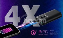 Model P10000QCD je vybavený digitálnym displejom, ktorý zobrazuje presný stav powerbanky. Môžete nabíjať jedno alebo tri zariadenia súčasne a stále máte presný prehľad o zostávajúcom výkone!