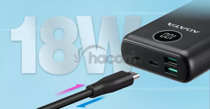 Skráťte si čakanie s powerbankou ADATA P20000QCD! Táto powerbanka je vybavená veľkou batériou 20 000 mAh, má kompaktný formát a podporuje štandardy Qualcomm QC 3.0 a USB Power Delivery 3.0.Podporuje štandardy Qualcomm QC 3.0 a USB PD 3.0