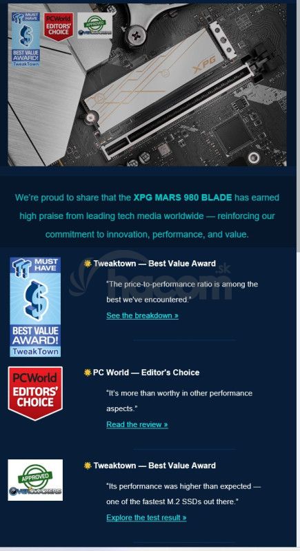 SSD disk MARS 980 BLADE Gen5 je prvý SSD disk PCIe 5.0 určený pre notebooky. Vďaka bleskurýchlemu sekvenčnému čítaniu/zápisu rýchlosťou až 14 000 / 13 000 MB/sa priestrannej kapacite 4 TB poskytuje dlhodobý a stabilný výkon pre náročné úlohy. Je plne kompatibilný s najnovšími platformami Intel a AMD a definuje novú éru rýchlosti a štýlového chladenia.*Použiteľný do notebooku