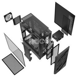 Podporuje základné dosky: Mini-ITX, Micro-ATX, ATX, E-ATX. M-ATX a ATX s reverznými konektormi