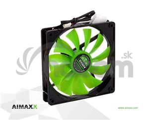 Spoľahlivosť, tichosť a atraktívny svieži dizajn - to sú ventilátory AIMAXX. Všetky AIMAXX ventilátory sú vybavené unikátnym Nanomaxx ložiskom. Toto AIMAXX patentované ložisko je vyrobené zo super tenkého ale extra trvanlivého materiálu a zaručuje vysokú životnosť a veľmi nízku hlučnosť, dosiahnutú malým trením. Svieža zelená AIMAXX farba je zdôraznená zeleným LED podsvietením. Celá séria je balená v pútavom zeleno-čiernom balenie s oknom pre ľahšie prezentáciu zákazníkom.Technická špecifikácia: