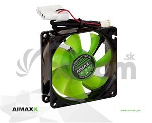 Spoľahlivosť, tichosť a atraktívny svieži dizajn - to sú ventilátory AIMAXX. Všetky AIMAXX ventilátory sú vybavené unikátnym Nanomaxx ložiskom. Toto AIMAXX patentované ložisko je vyrobené zo super tenkého ale extra trvanlivého materiálu a zaručuje vysokú životnosť a veľmi nízku hlučnosť, dosiahnutú malým trením. Svieža zelená AIMAXX farba je zdôraznená zeleným LED podsvietením. Celá séria je balená v pútavom zeleno-čiernom balenie s oknom pre ľahšie prezentáciu zákazníkom.Technická špecifikácia: