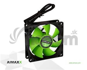 Spoľahlivosť, tichosť a atraktívny svieži dizajn - to sú ventilátory AIMAXX. Všetky AIMAXX ventilátory sú vybavené unikátnym Nanomaxx ložiskom. Toto AIMAXX patentované ložisko je vyrobené zo super tenkého ale extra trvanlivého materiálu a zaručuje vysokú životnosť a veľmi nízku hlučnosť, dosiahnutú malým trením. Celá séria je balená v pútavom zeleno-čiernom balenie s oknom pre ľahšie prezentáciu zákazníkom. V balení nájdete nielen samotný vetráčik, ale aj zelené silicového antivibračné skrutky, klasické kovové skrutky a silikónové antivibrančí podložky. Vetráčik je vybavený možnosťou pripojenia na 4pinový konektor PWM.Technická špecifikácia: